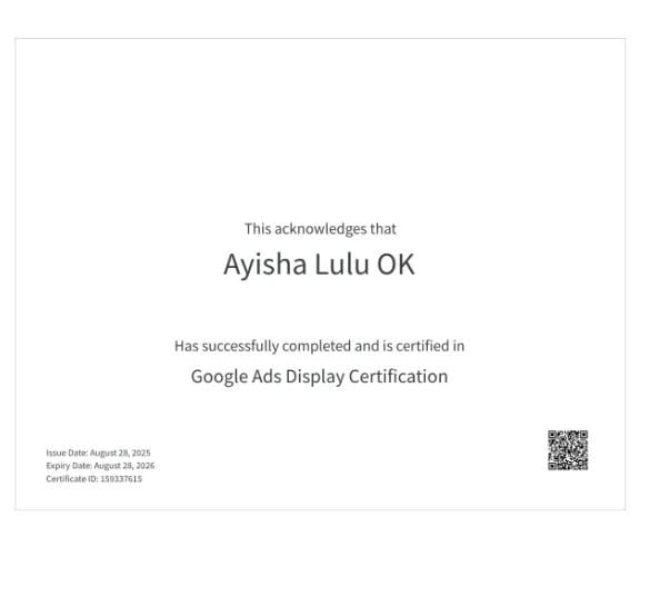 - 2 2025 AI Integrated Digital Marketing Learn with beeka Completed an in-depth digital marketing program covering SEO, social media marketing, Google Ads, content strategy, and analytics. Gained practical hands-on experience in running campaigns and optimizing online presence for business growth