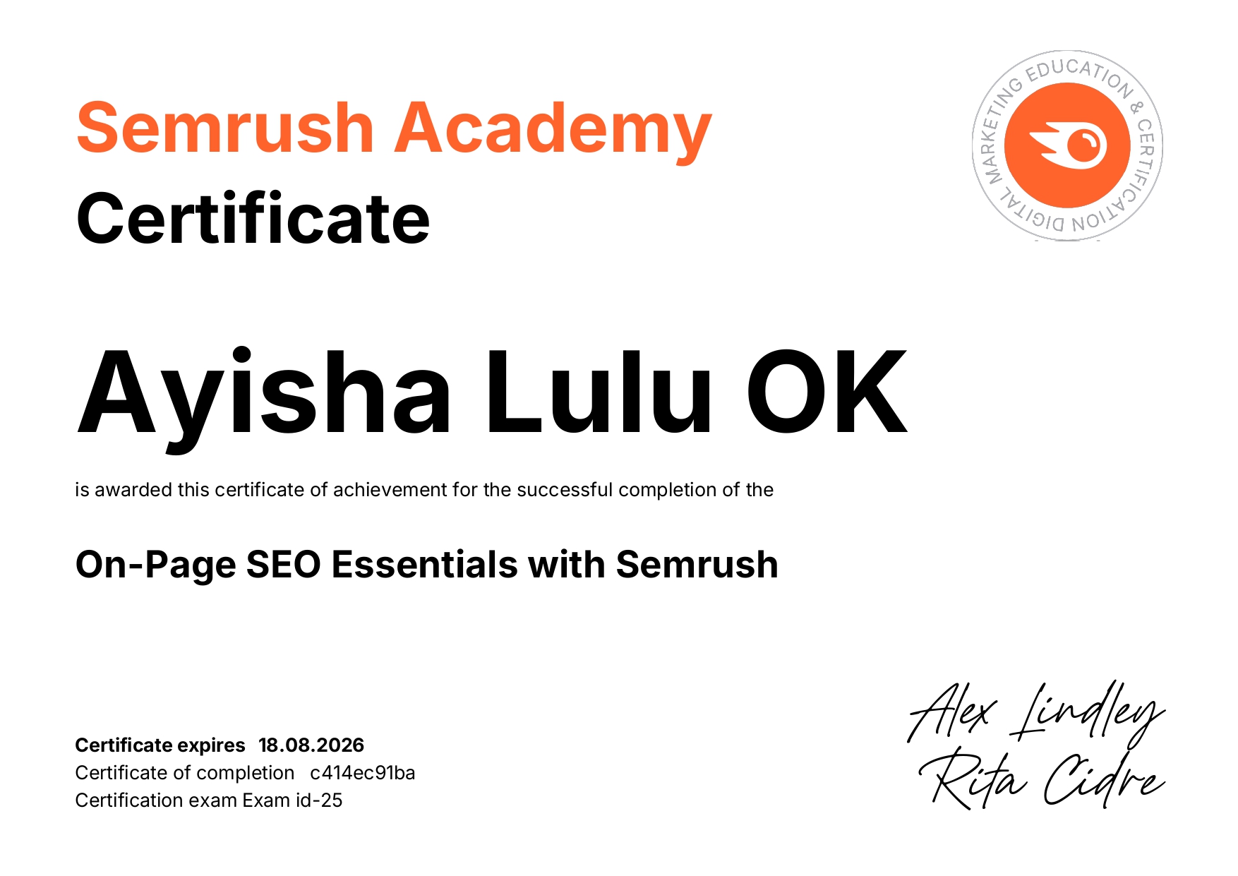 - 2 2025 - Now RIXO Handled Off-Page SEO, including link building and local citations, helping the website achieve the #1 rank and improve domain authority. Executed Technical SEO, focusing on site audits, crawlability, indexation, page speed optimization, and fixing site errors to enhance website performance.Monitored analytics and SEO performance to make data-driven recommendations and maintain top rankings.